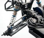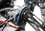 Like the other vehicles in the 5-Series, the SC5M uses a bearing equipped dual bellcrank steering system chock full of tuning features. Ackermann, toe and bumpsteer are all adjustable and AE has even included a pair of red Orings over the steering rack ballstud to eliminate slop. The HD ballcups are used here as well, with the ones attaching to the steering knuckles being angled to provide clearance with the wheels when the steering is at full lock. One final upgrade to the steering is the addition of the solid drag link. I’m glad that multi-piece threaded rod has gone bye, bye.