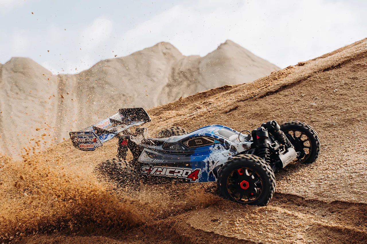 Discover the power and precision of the Team Corally Syncro-4, a 1/8-scale buggy engineered for both beginners and seasoned enthusiasts. With over 80-percent of its components shared with Team Corally’s flagship models, the Syncro-4 introduces innovative features at an unbeatable price point. The introduction of new threaded composite big bore shocks, extreme composite shock towers, and a hybrid chassis brace system exemplify the perfect blend of durability, performance, and cost-effectiveness.