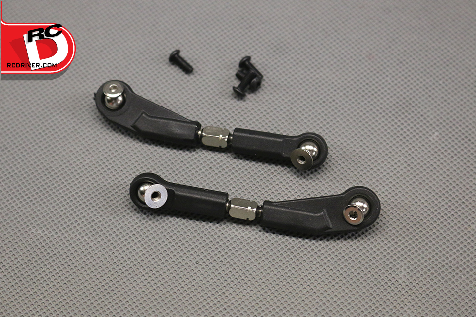 – Step 25 shows assembling the steering link and horn. The short link is not assembled so you’ll need to use the set-screw to mate up the two rod and and press the pivot balls into the ball ends. Also pay close attention to how you install the servo into its mount, the larger tabs on the top of the mount should face outside of the chassis.