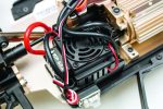 The electronics package in the D10SC is top notch too. The waterproof 100A brushless ESC was sourced from Hobby Wing and if fully programmable. It comes standard with a cooling fan to keep it running efficiently and connects to the battery using a high current connector. The 2400Kv 540L motor is encompassed by a cold anodized heatsink that has mounting holes to add an optional cooling fan. Other manufacturers should take a lesson from Team Energy and include a radio as good as the GT3X in all RTR vehicles. The included Gold Edition (only available with RTR vehicles) of the GT3X has a backlit LCD screen, 10-model memory, and has many options like basic throttle and steering trim, dual rate, EPA, EXP, sub trim and more. The power switch is found in an interesting spot, too… the center of the drop-down steering wheel!