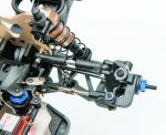 The steering system on the D10SS starts with the metal geared ND1015 servo. It is plenty quick and has 15kg of torque to push the tires from side to side. An aluminum servo horn (no plastic here) connects to an adjustable turnbuckle and to the dual bellcrank. The bellcrank has an integrated servo saver than can be easily adjusted with the blue anodized collar. Beginners might want to loosen this so it is more forgiving while more experienced users might want to tighten it down for a more precise feel. The bellcrank then attaches to the steering knuckles by way of long, adjustable turnbuckles.