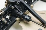 Lots of changes have taken place to the suspension although, once again, it’s not blatantly obvious at a casual glance. A big note to point out is the truck is narrower than its predecessor. TLR states that it’s a total of 11mm narrower in order to handle more aggressively on tighter courses. Another big change is the spindle height can now be adjusted with spacers to alter the effects of dogbone plunge and in the rear TLR now includes the HRC inner aluminum hinge pin pivot blocks. The thick aluminum towers have been refined with more shock mounting locations and new camber link locations that will allow a wider range of tuning adjustments. On each corner, the shocks received a makeover with new bleeder style shock caps that will allow you to build the shock as an emulsion shock or bladder type. TLR includes a rubber seal ring for the top of the shock when building it emulsion style. The X-ring seals along with the TiCn coated shock shafts give the shock a smooth feel and the shock boots do a great job of protecting the shocks without tearing or binding.