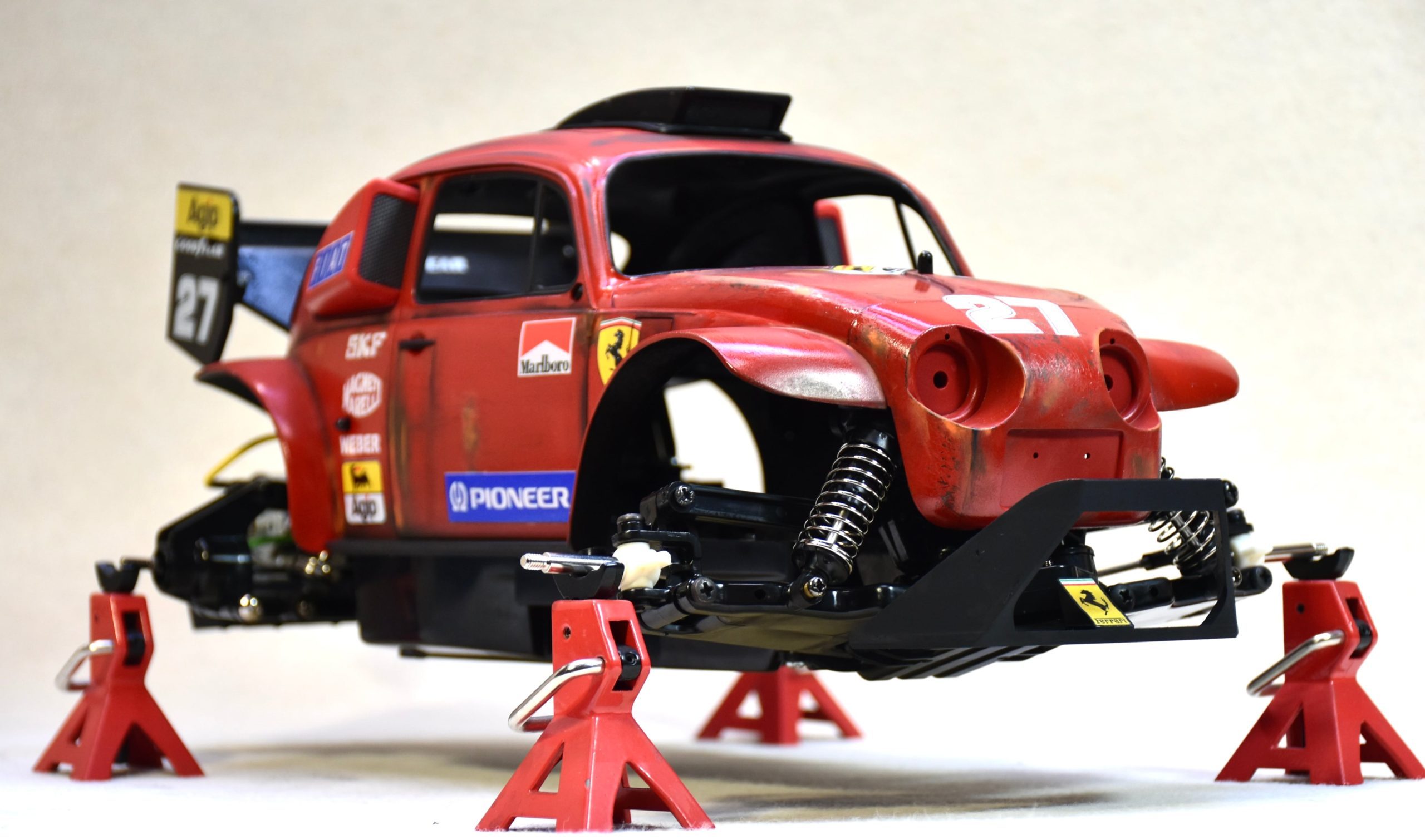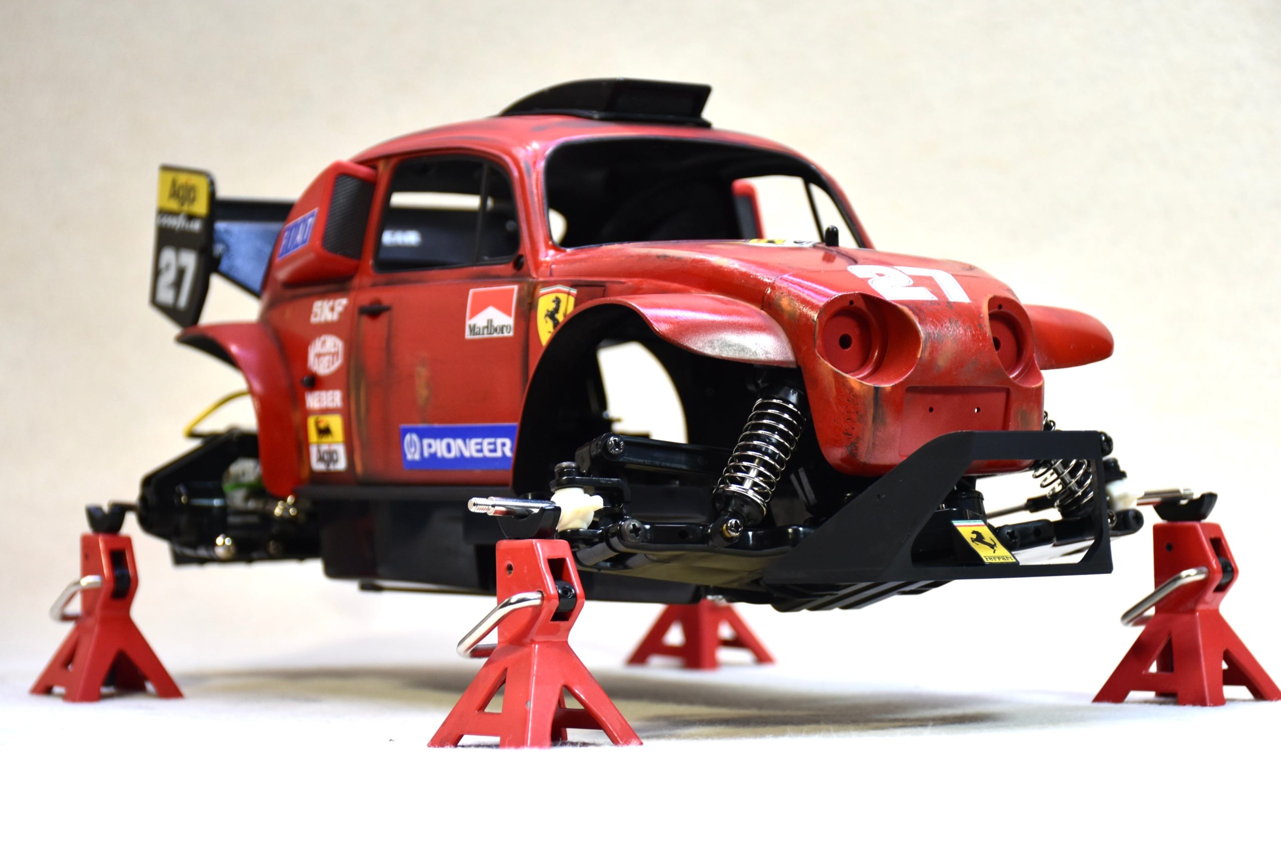 The main theme in this round of incredible custom Tamiya Beetle builds of Bruno Lopes is Formula 1 racing. Bruno’s passion for F1 inspired him to fuse the iconic Tamiya Beetle body with legendary Formula 1 liveries that you would find in the late 80’s and early 90’s, like the Ferrari 643, Benetton Ford and Williams FW14. This was such an awesome time period in F1 where the racecars were insanely powerful and had minimal driver aids thus making driver skill paramount. This is also the time where there was an explosive mix of legendary drivers by the likes of Ayrton Senna, Alain Prost, Nelson Piquet, Nigel Mansell, Michael Schumacher, Damon Hill, Jacques Villeneuve and Mika Hakkinen.