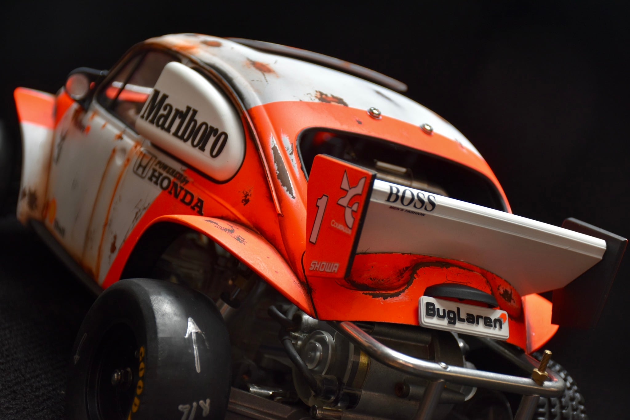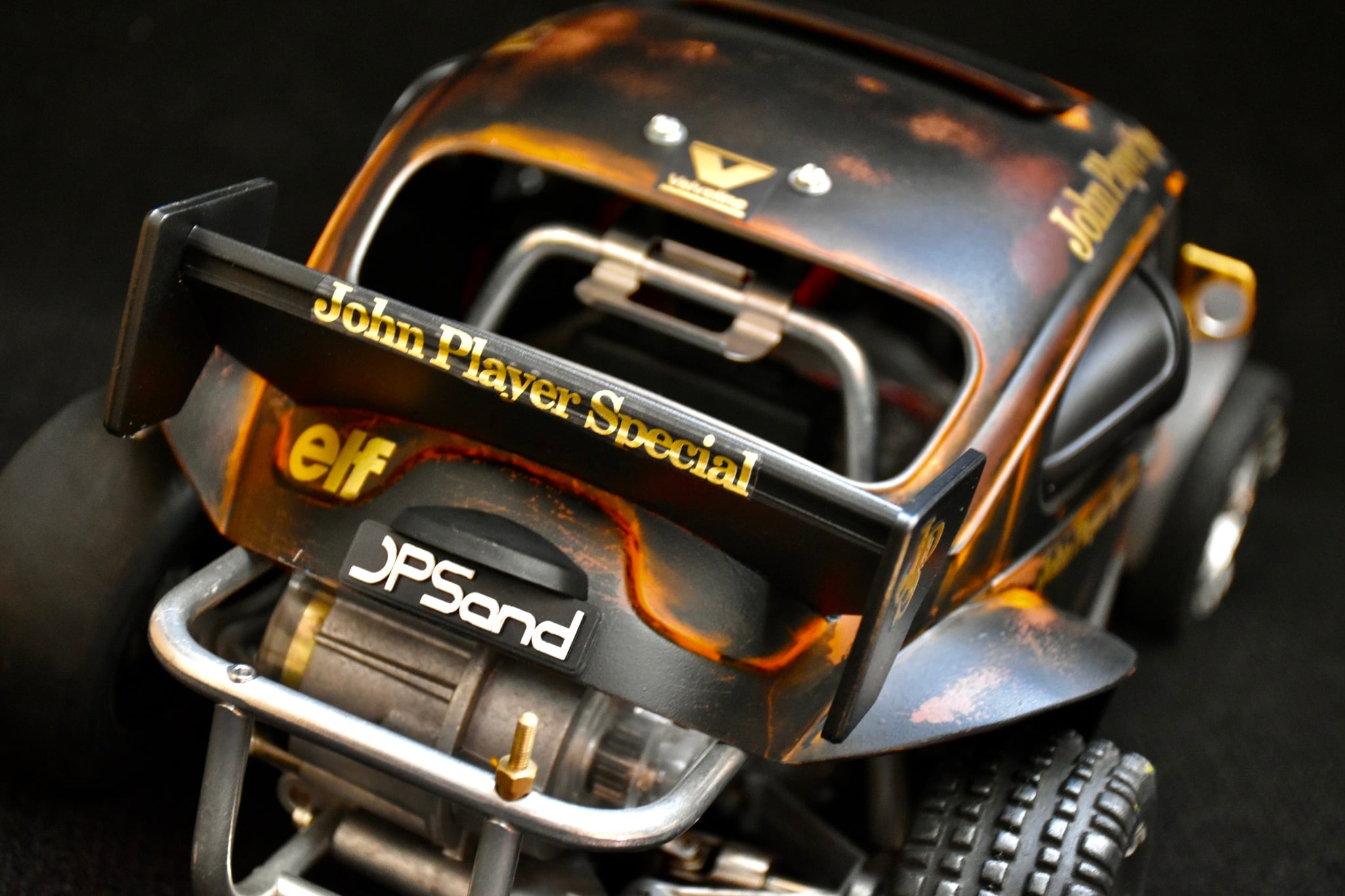 His RC journey began properly at 22 with his first nitro-powered car. A decade-long break ensued, a common story for many hobbyists, until the birth of his first son brought him back to the fold—permanently. His renewed involvement began with restoring vintage nitro vehicles, but quickly evolved into a drive for extreme custom creations. Bruno expresses a clear preference away from box art. Instead, he thrives on the process of formulating custom-made color combinations by mixing paints and applying personal, special details. This drive to make each vehicle unlike any other is how he has honed the methods necessary to produce this stunning, highly personalized collection of Tamiya buggies.