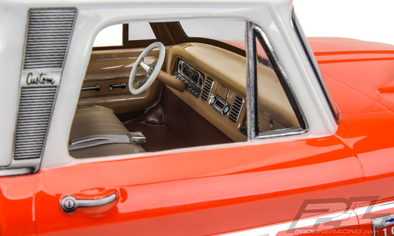 Pro-Line designed the interior to have the classic bench style front seat, door panels and dash that matches the trucks built in the 70’s. There is also a scale decal sheet to bring the interior to life. To finish off the interior, all you need to add is a steering wheel and then install it into the body using double-sided tape.