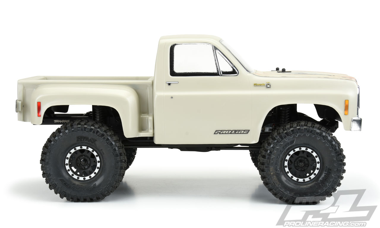 We also really like this body because it comes in two pieces; the cab section and the bed section. For the purposes of building up a scale crawler, we would just use the cab and scrap the bed section. Pro-Line carefully sculpted this body to faithfully recreate the lines and squared off look of the iconic ’78 K-10. Although the body comes clear, Pro-Line hooks you up with window mask and overspray film to making the painting step easier. And to complete its look, there is a detailed sticker sheet included with the body.