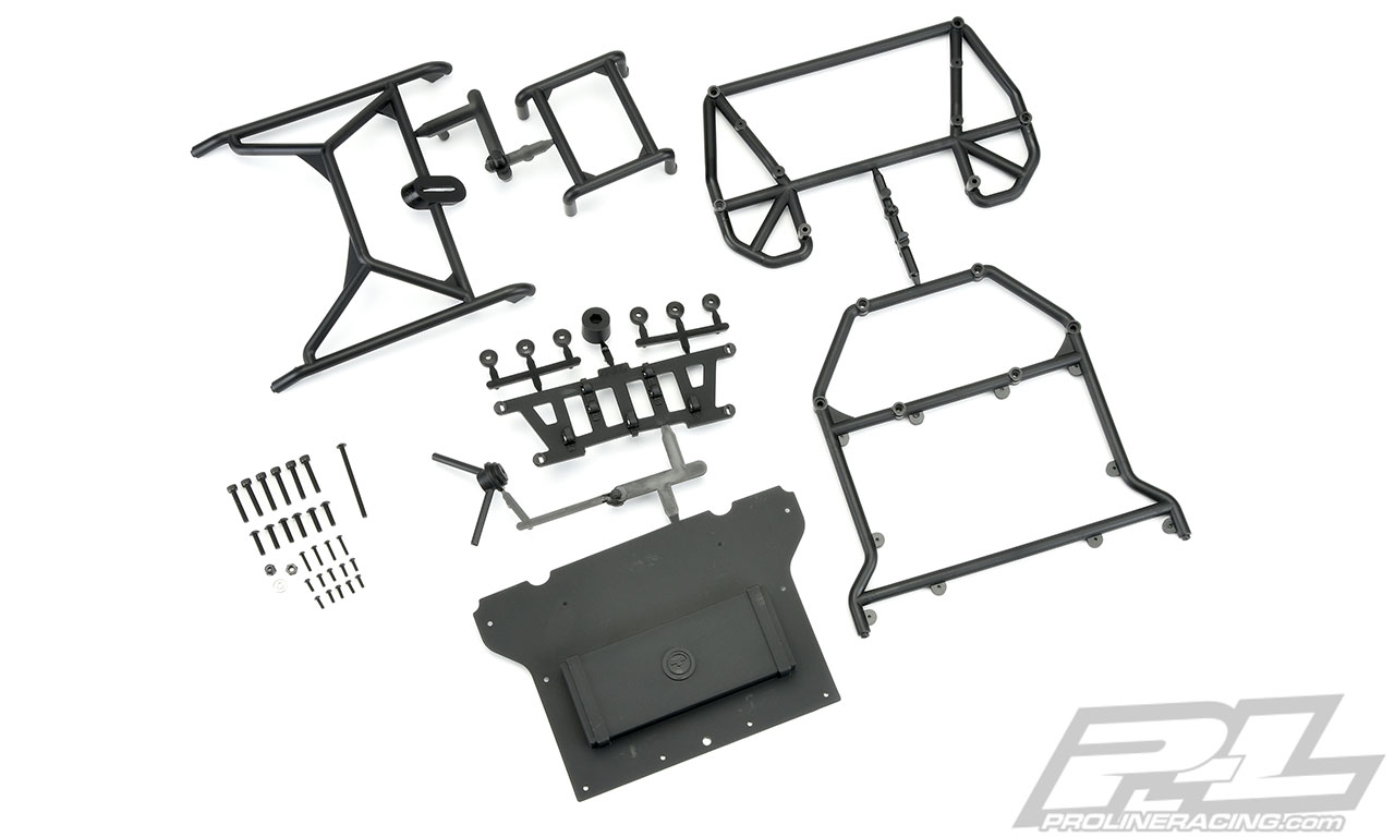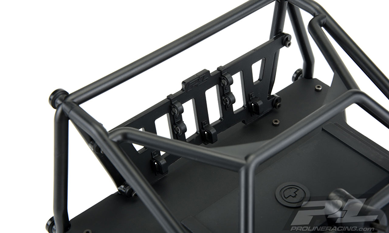 The addition of the Back-Half Cage will dramatically change the look of your crawler especially with the extra features that Pro-Line built into it. At the rear of the cage is a spot to mount a spare wheel and tire as well as a rack to mount scale accessories. Found in the center of the cage is a molded gas tank that also acts as a spot for where you can add body post holes for securing it to the chassis.