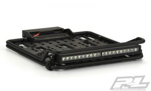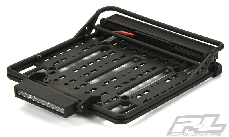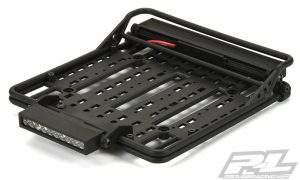 The rack features many openings in the bottom so you have numerous spots for straps and ties so that you can secure other scale accessories. To bring this roof rack to another level, you have the option of purchasing the 2” and 4” Pro-Line Super-Bright LED Light Bars and install them onto the rack. Pro-Line designed the Overland Roof Rack to cleanly integrate with the LED Light Bars where the 2” Light Bar (#6276-00) mounts at the rear and the 4” Light Bar (#6276-01) mounts up front.