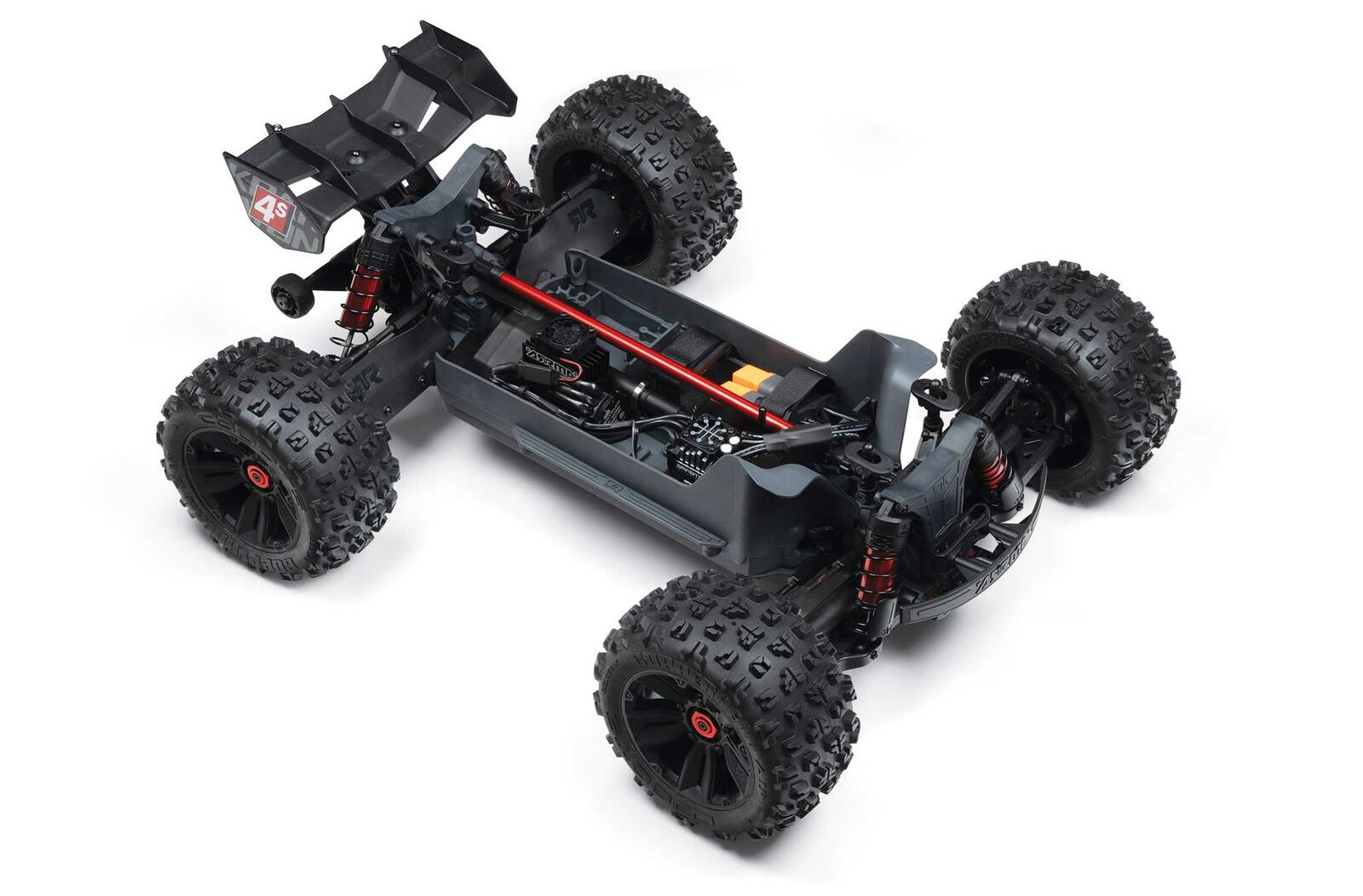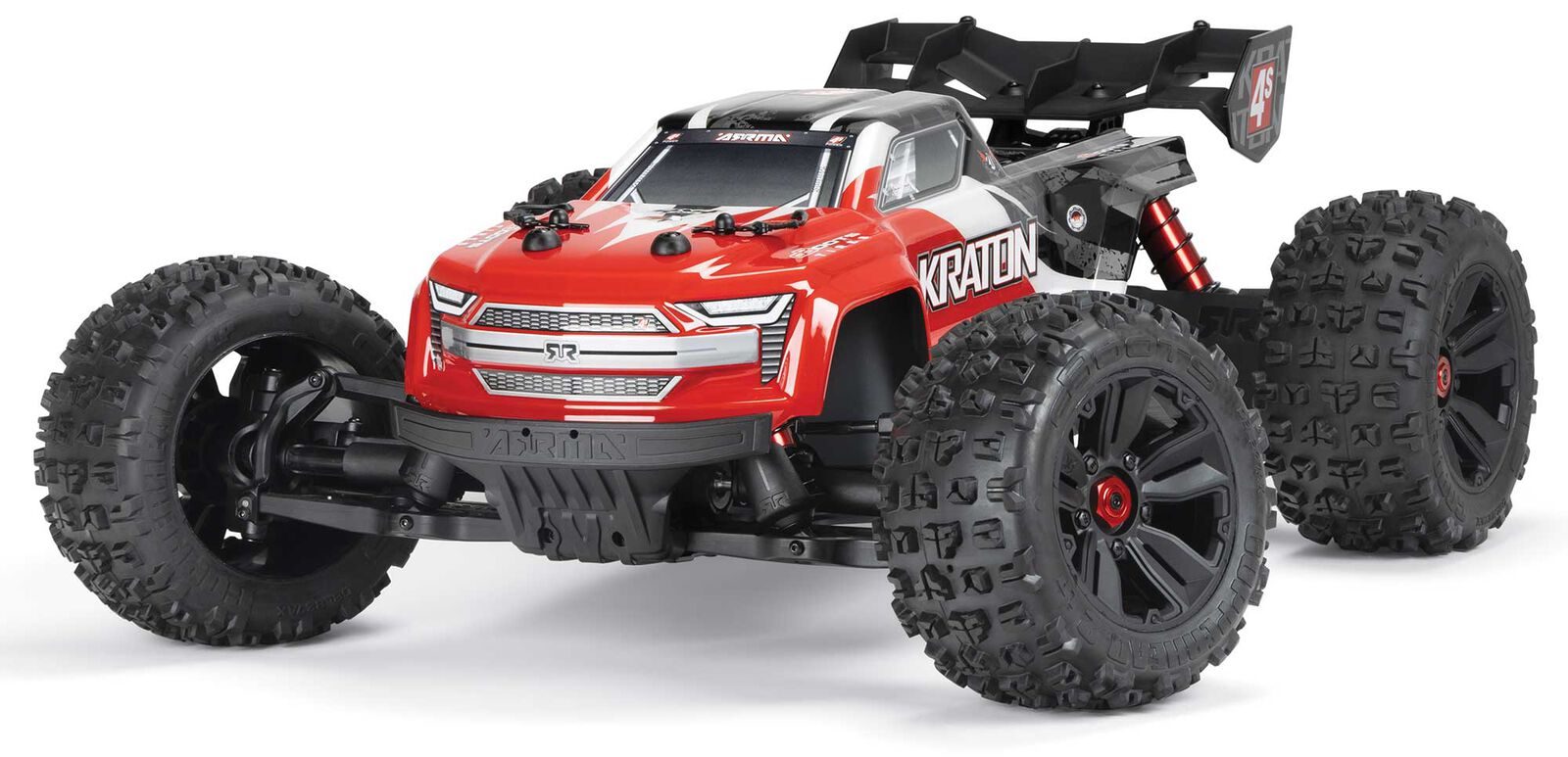 Looking to drop the hammer and experience some crazy high speeds and incredible bash performance? Then the Arrma Kraton 4S V2 is a perfect option for you. This big 4WD monster truck is extremely strong and fitted with a high-power Spektrum brushless system and metal center differential for more punch and traction to achieve awesome acceleration and impressive top speeds. Then to protect this beast from troublesome dirt from fouling its components, Arrma shielded it to the max with wishbone dirt guards, outdrive protectors and taller side guards.