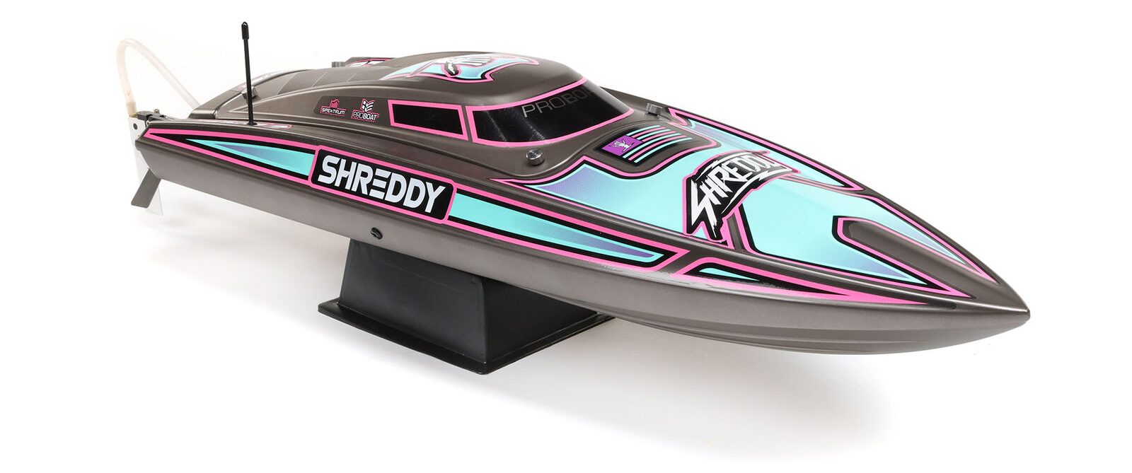 Stepping away from dry land and jumping into the water, we selected the ProBoat Recoil 2, 26-inch ready-to-run boat. And when we say ready-to-run, the Recoil 2 does not require you to purchase anything else to get this thing flying around the lake. The deep-V ABS plastic hull makes it very easy to drive and cuts through waves with ease. ProBoat outfitted the Recoil 2 with stainless steel hardware and all aluminum running gear including the propeller where other like boats have plastic props.