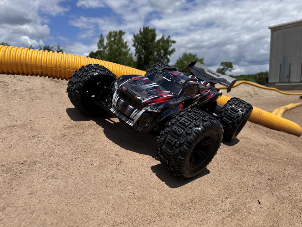 On the drive, the X-Maxx feels remarkably composed for something so large. The long-travel suspension soaks up harsh landings, while Traxxas Stability Management (TSM) works quietly in the background to keep the truck tracking straight and stable—even in mid-air corrections. It’s a confidence-inspiring platform that lets drivers push harder, jump bigger, and bash longer with less drama.