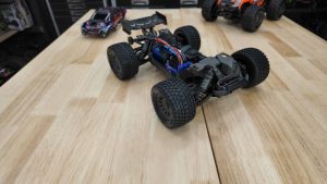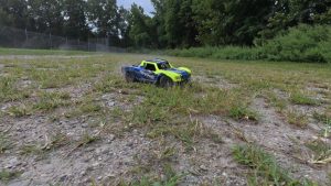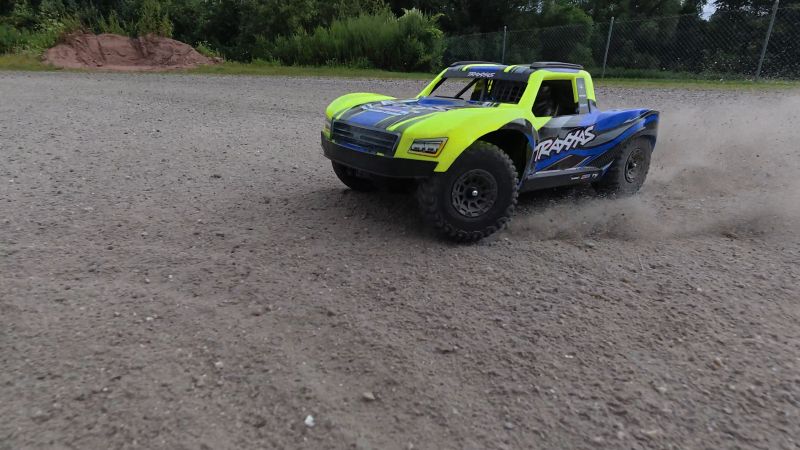 Expect about 30 mph right out of the box, paired with classic short course behavior — power slides, controllable oversteer, and enough suspension travel to soak up rough parking lots and dirt sections. It jumps flat, lands predictably, and feels solid even when pushed hard. If you enjoy aggressive cornering and playful handling, this one delivers nonstop smiles.
