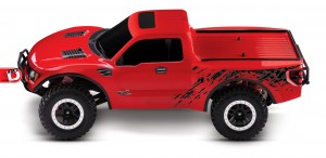 This version of the well-loved Traxxas Slash gets a sweet looking Ford F-150 SVT Raptor body in either white, blue or red and now comes with aggressive sounding OBA (On Board Audio). It still comes with waterproof electronics, a 550 sized brushed motor, plush suspension, 2.4GHz TQi radio system, 7-cell NiMH battery, 4-amp DC charger and much more.