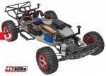Everything you love about the Slash, now with sound! The Slash 58034-2 comes with On-Board Audio, installed and a TQ radio system, XL-5 power system, iD Power Cell 7-cell NiHM battery, 4-amp peak detecting charger, a painted and decaled body and pre-glued tires. The On-Board Audio roars to life, projecting the actual engine sounds from a 900+ horsepower Pro 4X4 short course truck so there is no sneaking up on anyone now!