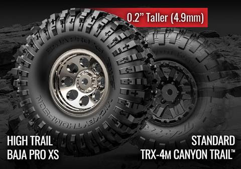 Small-scale adventure takes a big leap in performance with the TRX-4M Chevrolet K10 High Trail Edition. The High Trail pickup comes with a preinstalled Long Arm Lift Kit for 35% more center ground clearance than a standard TRX-4M and an extended wheelbase for even more all-terrain capability. Oversize Mickey Thompson Baja Pro XS tires enhance traction and give K10 a dramatic lifted truck profile. From indoor fun to outdoor adventure, TRX-4M K10 High Trail Edition delivers the quality and performance you expect from Traxxas.