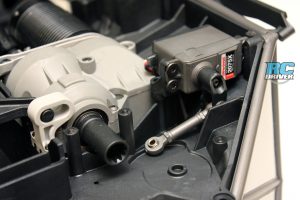 The Traxxas Unlimited Desert Racer is packed with new and exciting features and we’re still finding interesting design elements every time we cuddle up with the UDR on the workbench. The battery tray is easy to get to from the bottom hatch and is internally secured with an additional snap in plate. The belly pan can be removed from the bottom of the truck for easy access to the trucks major internal components. A burley looking Velinion 6S BLX is perched toward the rear of the truck and is fitted with ID plugs. The ESC sends power to a potent 2200kv motor and for steering a metal gear 2075x servo swings the dual bell-crank steering assembly with built in spring loaded servo saver. As you would expect, the electronics are also water-proof and the receiver sits in a sealed Traxxas radio box.