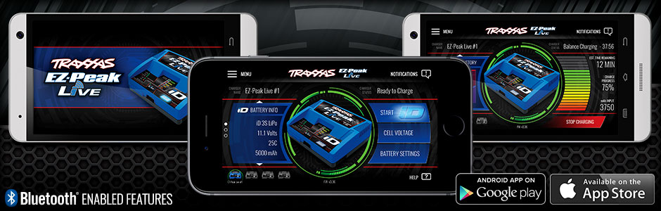Traxxas has just released their new EZ-Peak Live app which connects wirelessly via Bluetooth to the Traxxas 12-amp EZ-Peak Live multi-chemistry charger. The app transforms your smartphone or tablet into a powerful tool to unlock the charger’s advanced features with an easy-to-use graphical interface. Connect up to four chargers to your iOS device (Android version coming soon) to monitor charge status, receive real-time alerts, and access the charger’s manual settings.