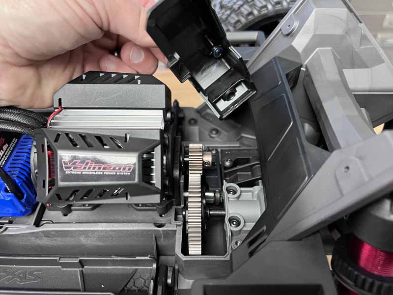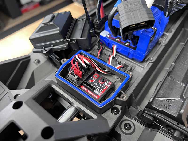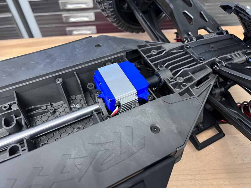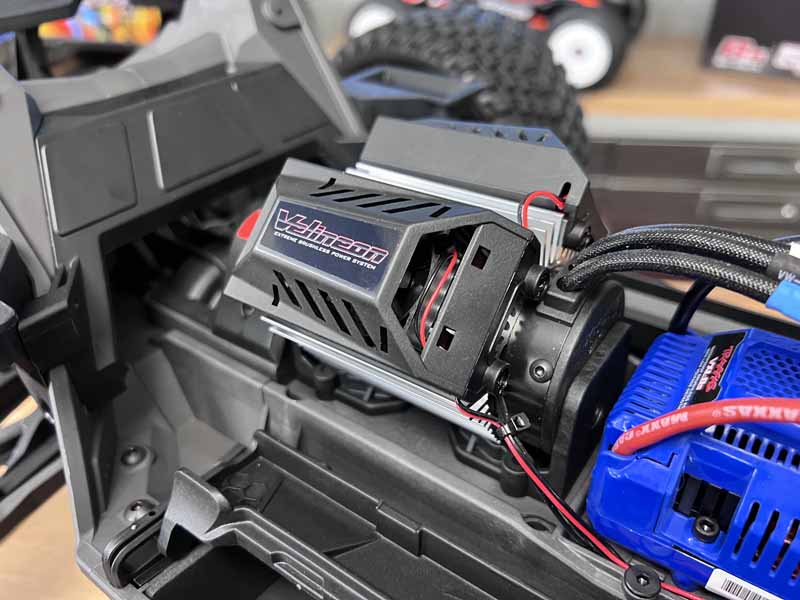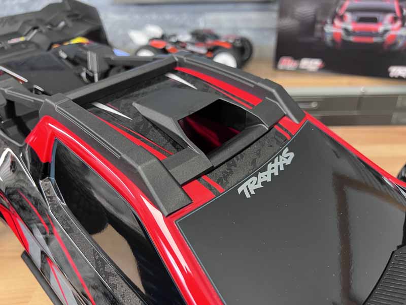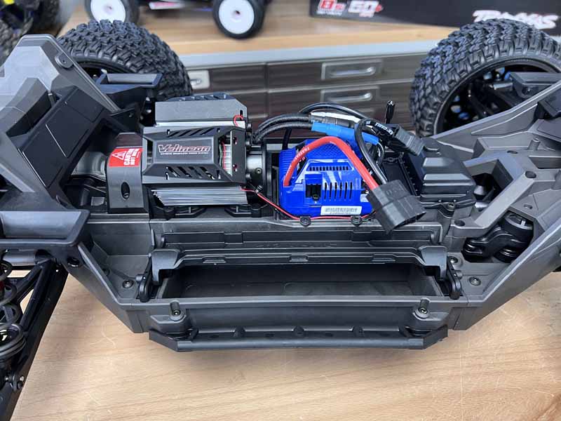 The X=Maxx electronics have been carried over too. TQi radio, TSM equipped receiver, Velenion 8S ESC and 1200kv motor with a massive heatsink and two cooling fans.