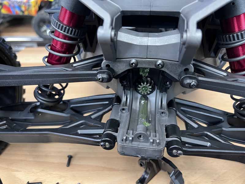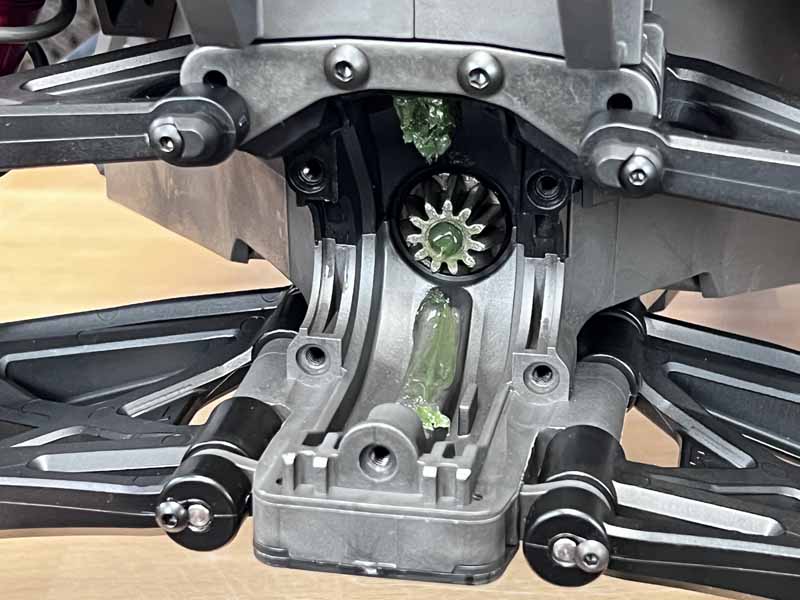 The driveline has been lifted from the X-Maxx as well. Huge diffs, metal gears, aluminum center shaft with new felt seals. There’s also sealed ball bearings, cush drive and CV-driveshafts.