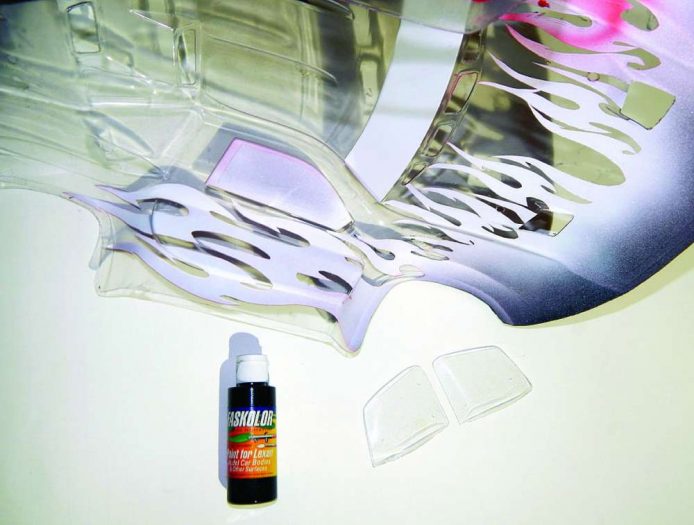 I purposely did the paint in the order I did because I like when flames have an over-exaggerated effect, but if you wanted less exaggerated flames you would just have to reverse the order and do the background first. This would make you cut the out- line on the inside of the flames. Now that it is finished, I have to take a step back and give myself some self-criticism. In this case I was surprised how much it reminded me of the original Batmobile, but that is fine, I love the Batmobile. This would be Batman’s SC10 if he raced RCs on his day off! I also realized this was supposed to be a race body, and this may not be the easiest body to see when we race at night, but at least it will definitely stand out from the pack. I like it!