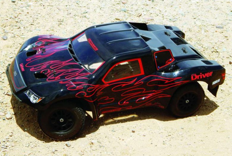 When I picked up this Pro-Line Evo SC body I had no particular inspiration. I just needed a body for my Associated SC10.2. I figured I would just do my usual flames, probably blue and silver; those are my colors, sometimes I like a blue and lime green. When I pulled the body out of the bag and I looked at the decals, I suddenly got a different idea. I noticed the decals seemed to have a black with red trim theme going on and I liked how this gave it a modern, techy look. It suddenly occurred to me how it would look if I carried the theme through the body and did just a red outline of the flames. To do this I will just paint it as I normally would, but the difference here is the color selection. I thought this would be an excellent example of how your color choice can have a dramatic effect on the overall look. So I present to you my Black on Black Evo SC.