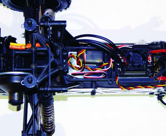 5 Now it’s time for the ESC. Gently pry the old ESC off, and unplug it from the receiver. I’m not going to attach the ESC just yet. I am only mocking it up so I can see how long to make my wires. Shorter wires will look cleaner and be slightly more efficient. I pull them past the plug on the motor wire and cut the wire about a half inch past the end of the plug. Leave a little slack so they don’t come unplugged during crashes.