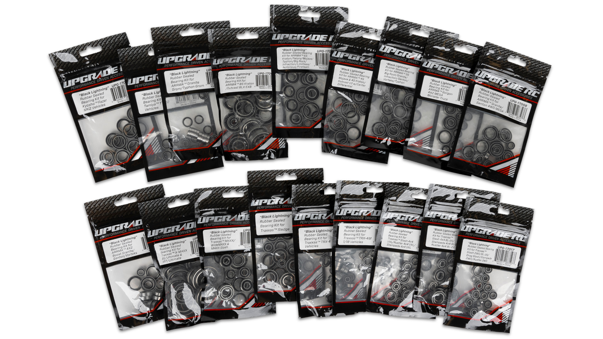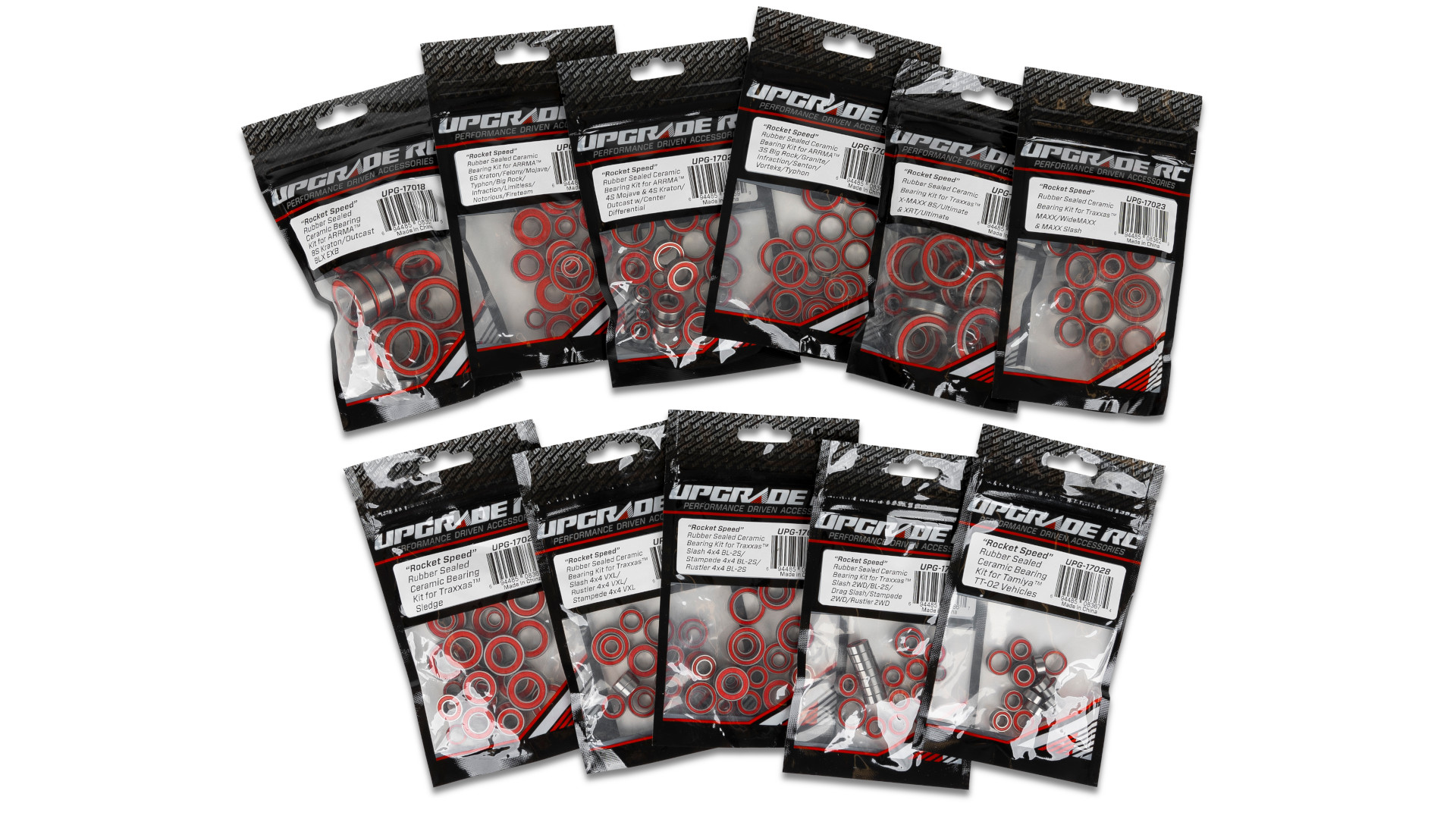 UpGrade RC is announcing the release of both ceramic and rubber sealed bearing sets for the most popular RC vehicles in the industry, including ARRMA, Traxxas, Kyosho, and Tamiya cars. These high-quality sets provide the exact bearings needed for each respective vehicle, eliminating the need to overspend by purchasing various bearing sizes and being left with more bearings than you need for the car or truck.