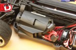Vaterra is filling the garage with a wide range of exotic super cars in RC form of course. The newest car to hit the street in their fleet is the 2014 Chevrolet Corvette Stingray based on the V100-S chassis. Now when the kit arrived, it instantly drew us in to wanting to go out and drive with its stunning detail and perfect body lines. The body is two pieces so the Vaterra crew could pack in the details and the body is finished off in a eye catching charcoal grey. The mirrors match the paint scheme perfectly and there is even faux exhaust tips out back. Then adding to the detail are the split spoke rims with silver satin finish wrapped in soft rubber tires for excellent traction. The chassis is a sturdy platform that we’ve seen on Vaterra’s other on-road offerings with a shaft driven drivetrain, gear differentials and composite universal driveshafts. The independent suspension is simple and durable and damped by friction type shocks. This appears to be another great, no hassle, just drive and have fun car. But what sets it over the top is the complete RTR package that includes waterproof electronics. We can’t wait to take the car out for a spin after a light rain.