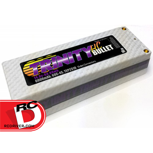 Looking for Great runtime and punch? Then check out the new Team Trinity High Capacity 4S, 6000mAh, 60C LiPo pack with 5mm bullet connectors. The large bullet connectors are designed to handle more amperage and will make a better connection with less failures than standard plugs.