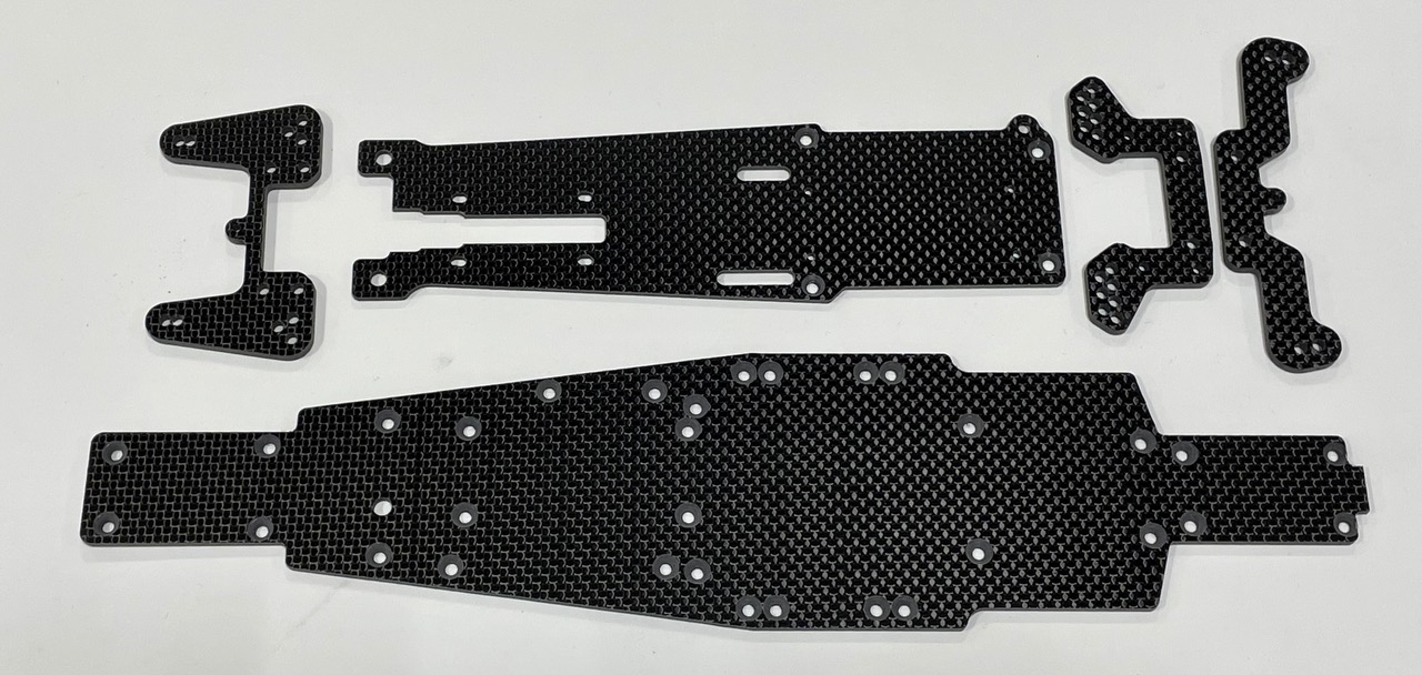 Xtreme Racing is proud to announce some new items for the Kyosho Optima Mid 2022 re-release. These include a 2.5mm quasi carbon fiber chassis, a 2mm radio tray along with 3mm front shock tower, rear shock tower and rear camber mount. All parts are designed to replace the stock parts without any modification and add strength along with great looks.